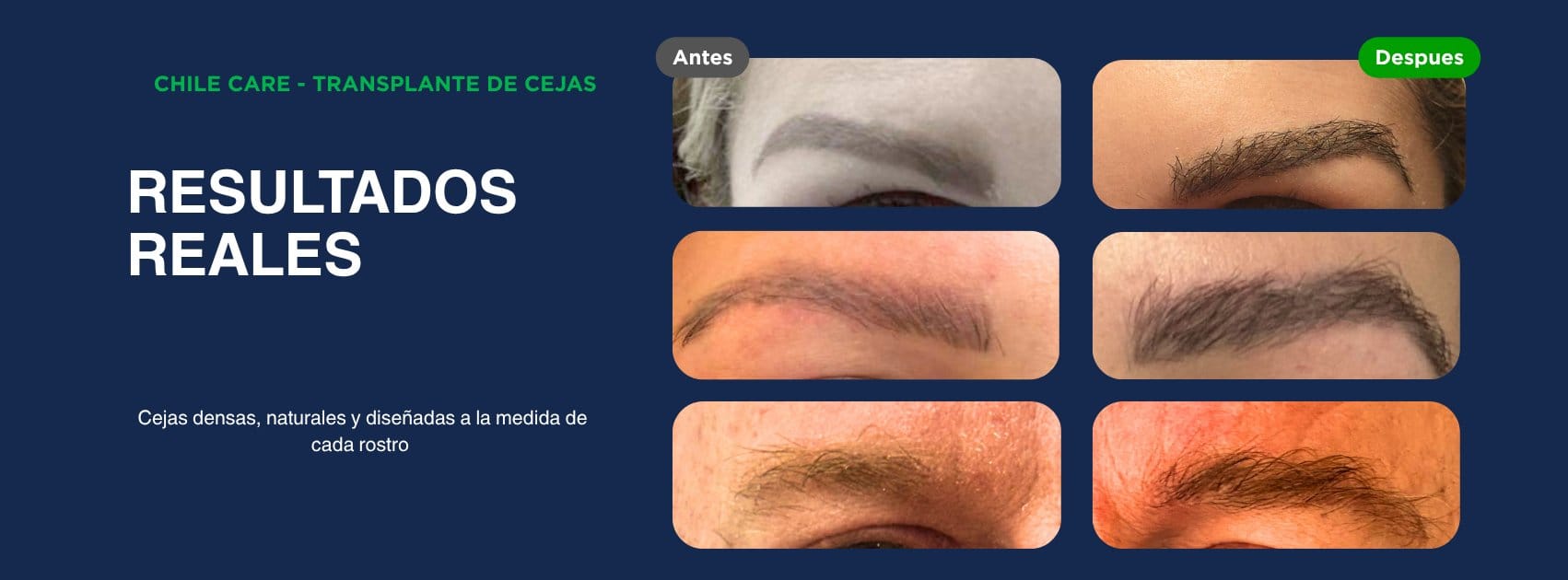 “Siempre sentí que mi mirada carecía de fuerza por tener cejas muy finas. El cambio con ChileCare fue sutil pero transformador — ahora mi rostro tiene mucha más simetría y me siento más segura. Nadie nota que es un injerto, solo me dicen que me veo más descansada y renovada.”